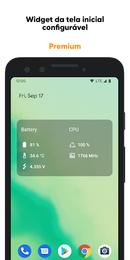 • Widget configurável da tela inicial, com informações sobre bateria, memória e muito mais;