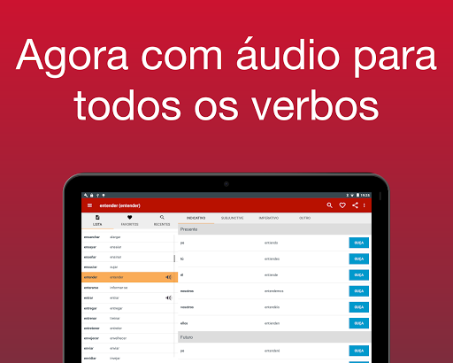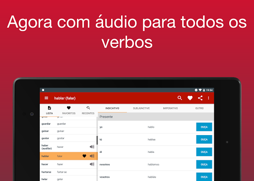 Agora com áudio! Não sabe como pronunciar um verbo? Agora você pode ouvir como cada verbo é pronunciado. Basta tocar no botão ao lado do conjugação. Nota: esta funcionalidade requer uma ligação à Internet.