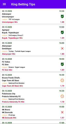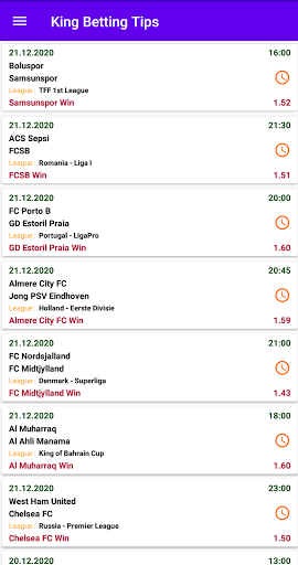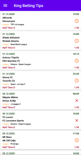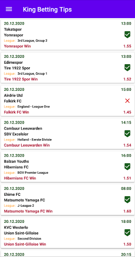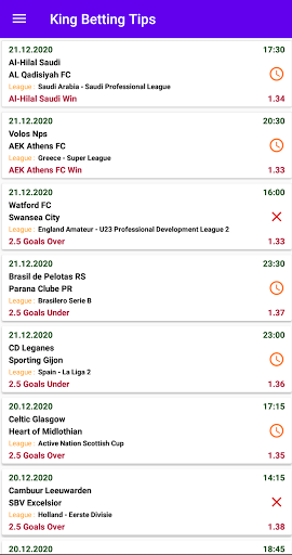 Existem 6 categorias diferentes de dicas de apostas em nosso aplicativo. Desta forma, cada utilizador pode chegar aos prognósticos da categoria que pretende e escolher as apostas que têm mais probabilidade de ganhar. As dicas de apostas do dia são publicadas regularmente às 8h e se houver um jogo adicionado às 13h, ele é adicionado ao sistema novamente.