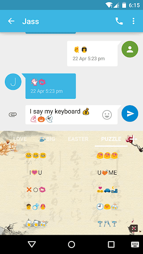 KK Emoji Keyboard is a free, smart and colorful Emoji Keyboard for Android that help you to fast input over 3000 emoji, emoticons, smiley, sticker and text face conveniently everywhere including message, text, email and chat with social app etc. It’s the best Emoji Keyboard for Android with over 100 beautiful themes, smart gesture type and auto correct, highly customization with color, layout, font and over 55 languages support.