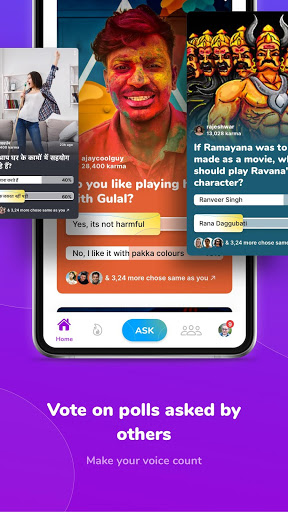 3. Você pode facilmente e rapidamente criar pesquisas para obter a opinião da comunidade do aplicativo Koral para - conhecer quais outros índios pensam sobre o seu novo vestido ou a nova música que você tem cantado, ou conhecer o que os outros pensam sobre um tópico de tendências, ou obter opiniões sobre qual produto comprar antes de fazer uma decisão de compra