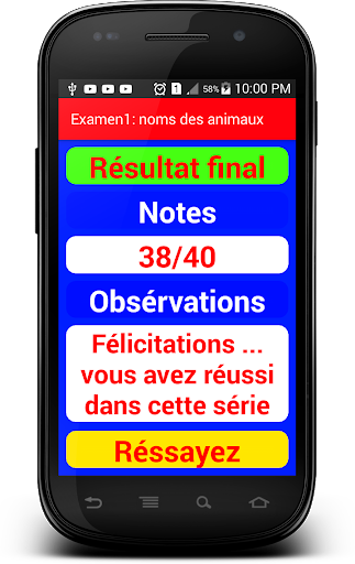 Si vous obtenez moins de 30 sur 40, l'application vous demande d'essayer de nouveau jusqu'à ce que vous arrivez à 40/40