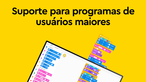 - Desenvolvam habilidades de pensamento computacional usando uma progressão de código baseada em bloco de ícones, bloco de palavras e texto.