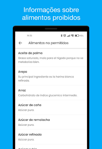 * Informações sobre alimentos permitidos e não permitidos para uma pessoa diabética.