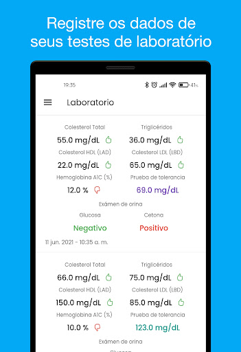 * Registre seus testes de laboratório e / ou exames médicos.