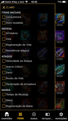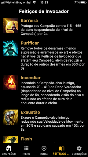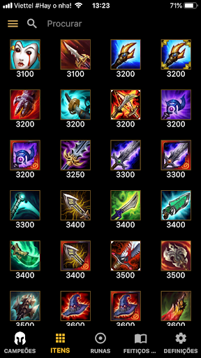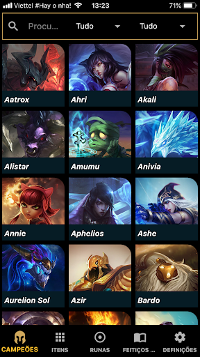 。Informação do Campeão, Informações do Item, Runas, Feitiços de Invocador.