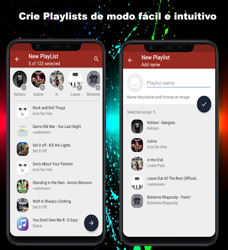 Utilizando o player de música 2021, você pode: excluir, editar, adicionar imagem, mover suas músicas, colocando-as na ordem que preferir. Além de vários outros recursos importantes e indispensáveis.