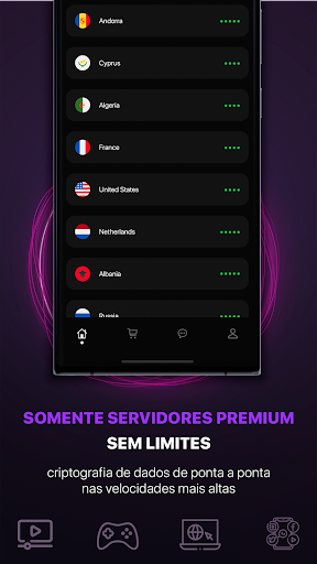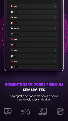 Sem limites de velocidade ou tráfego: assista, faça download, jogue, envie o tempo que quiser e faça isso nas velocidades mais altas. A grande coleção de servidores nos principais locais permite acessar recursos que podem não estar disponíveis em um determinado país ou acelerar sua conexão.
