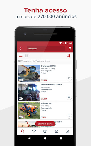 - Encontre facilmente o equipamento que procura graças ao motor de pesquisa por palavras-chave ou utilizando os filtros de pesquisa: marca, modelo, ano, hora…