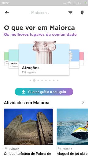 ➢ As recomendações e fotos das listas para download são 100% offline. Não se preocupe com os gastos de roaming, baixe o guia de Mallorca, antes de sair de casa, crie as suas próprias listas e disfrute ao máximo da sua viagem.