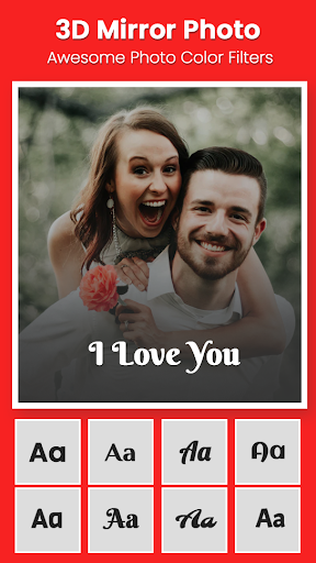 texto pode ser inserido no quadro de efeito de fotografia de espelho para tornar a imagem do espelho mais expressivo. 30 Opções de fonte e 35 opções de cores estão disponíveis. O texto pode ser girado livremente e ajustado sobre o quadro do espelho.