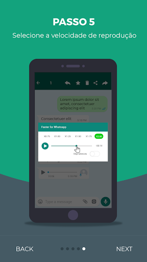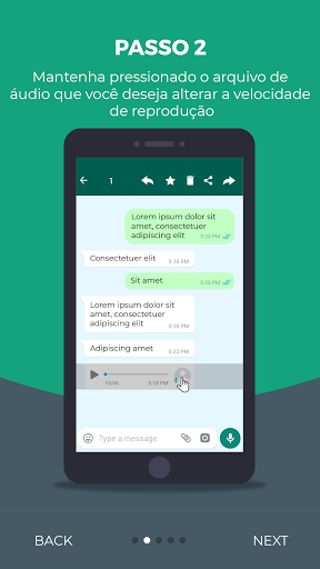 - Controle de velocidade para mensagens de áudio. Você será capaz de pular os silêncios constrangedores.