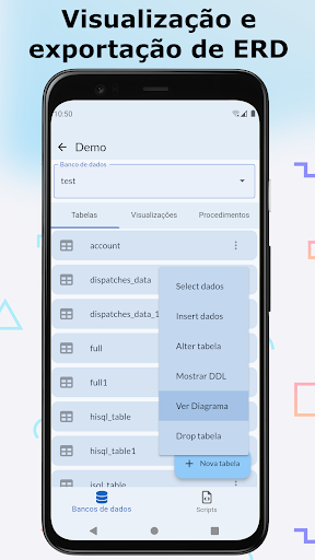 • Visualização e exportação de ERD.