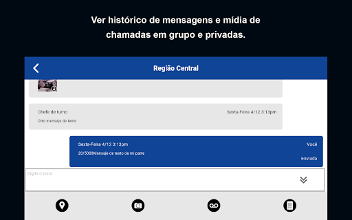 • Histórico contínuo de mensagens, textos e multimídias