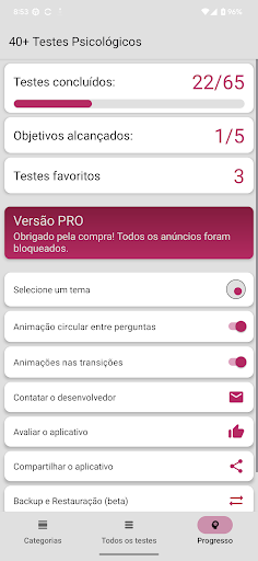 · Faça testes para depressão, tipos de personalidade, autoconfiança, capacidade de compreender as pessoas Conheça melhor seus pontos fortes e fracos. Compreenda as causas de conflitos familiares e mais.