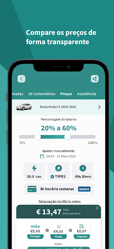 A aplicação miio permite carregar o seu veículo elétrico em Portugal, França e Espanha comodamente, saber antecipadamente o preço e interagir com a comunidade.