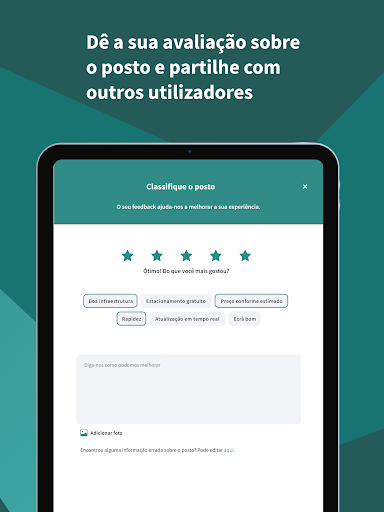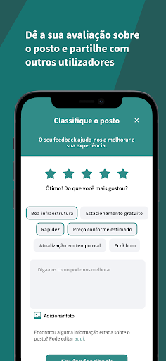 - Comentar, classificar e adicionar fotos aos postos de carregamento;