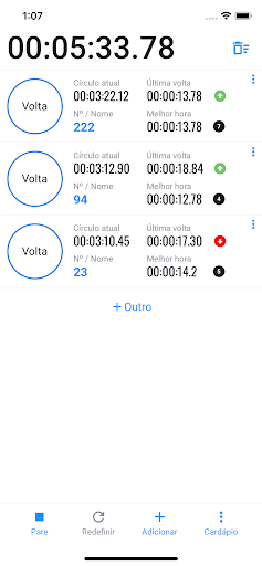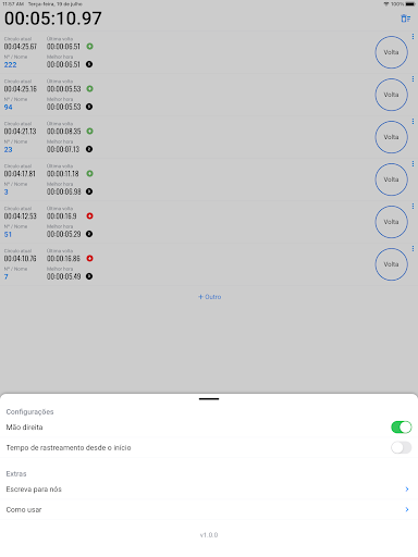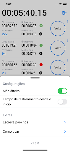- Mostra os tempos de volta atuais, melhores e mais recentes