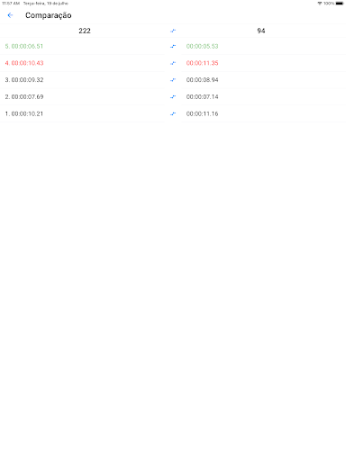 - Você pode ver os totais de todas as voltas e comparar os resultados de múltiplos participantes