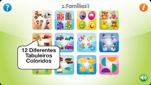 Em Famílias 1, as famílias são feitas de 4 imagens que são todas parecidas, com uma pequena variação visual. Ele é projetado para crianças com idade de 2 .