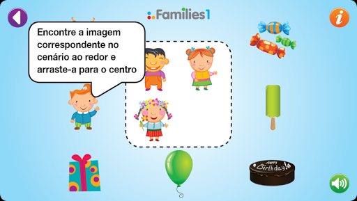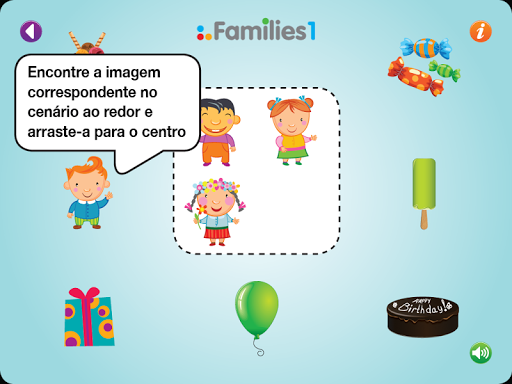 Em Famílias 2, as famílias são feitas de 4 imagens diferentes que são conceitualmente relacionadas. Ele é projetado para crianças com idade de 3 .