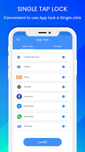 ✔ System app lock: Apps like contacts, messages, galleries, etc. can be locked easily.