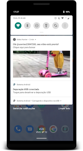 Quando você marca o @BaixadorDeVideo em um vídeo no Twitter, o Video Hunter te notifica assim que o vídeo estiver pronto para download