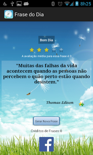 3) Compartilhe com seus amigos - Você pode compartilhar a frase no Facebook e inspirar as pessoas ao seu redor. (Logo iremos adicionar mais redes sociais.)