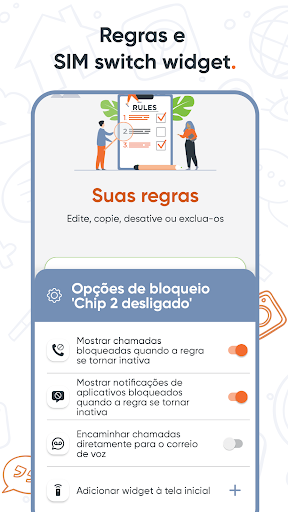 A nossa interface amigável facilita a gestão das configurações dual sim e a configuração de planos para chamadas e mensagens. E a melhor parte? O nosso aplicativo de bloqueador de chamadas dual sim tem um período de teste grátis sem compromisso!