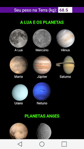 * Os planetas do Sistema Solar: Mercúrio, Vênus, Marte, Júpiter, Saturno, Urano, Netuno.