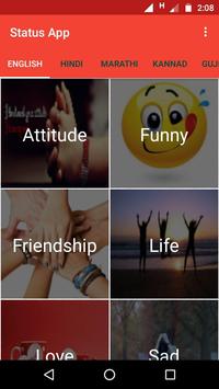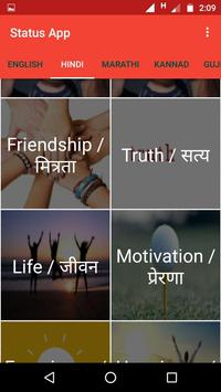 Latest Whats App status app contains status of different languages like