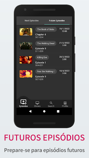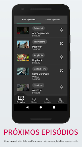 A melhor maneira de rastrear seus seriados e receber alertas quando um novo episódio estiver pronto para assistir.