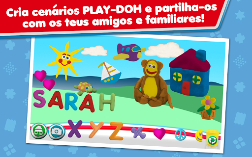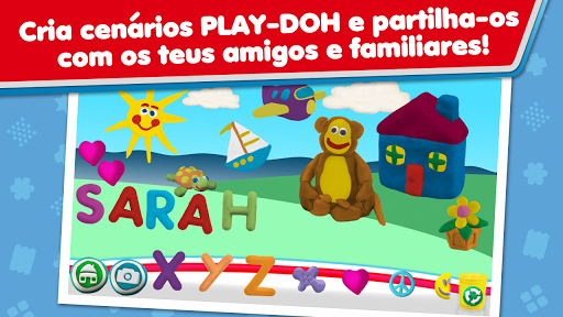 Cria os teus próprios cenários com as tuas criações de plasticina PLAY-DOH na secção Criar e partilhar. Aqui podes divertir-te com todos os objetos coloridos e animados que saem diretamente da tua imaginação, enquanto aprendes letras do alfabeto. Seleciona o teu fundo favorito e dá vida aos teus cenários PLAY-DOH com animações personalizadas. Guarda as tuas criações no teu smartphone ou tablet e partilha-as com os teus amigos e familiares!