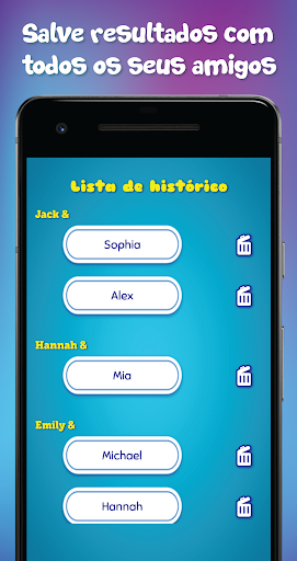 Basta digitar seu nome e o nome de um amigo e, em seguida, preencher diferentes questionários sobre sua amizade com essa pessoa. Depois de completar 10 perguntas em cada questionário, nosso algoritmo exclusivo avaliará suas respostas e fornecerá uma porcentagem de quão forte é essa amizade. Você poderá salvar seus resultados com cada amigo e até compartilhar seu melhor resultado com eles!