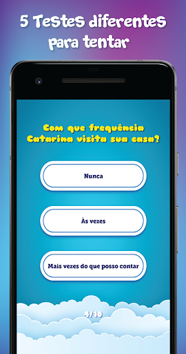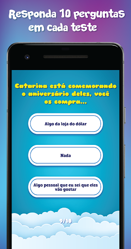 Há um total de 5 testes de amizade diferentes para testar, cada um com 10 perguntas sobre você e seu amigo, fazendo perguntas como: Você confia no seu amigo? Eles conhecem todos os seus segredos? O que você faria se ouvisse fofocas sobre seu amigo? E muitos mais ...