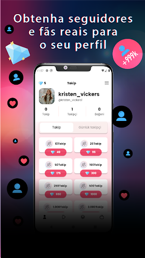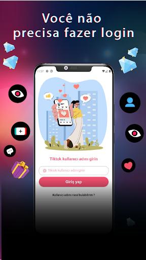 Faça login diariamente e ganhe diamantes de presente, siga usuários, ganhe diamantes ilimitados e use os diamantes que ganhar para obter seguidores e curtidas.