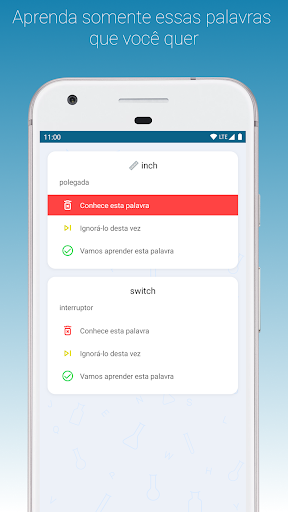 🕐 Só gastará o mínimo de tempo nele todos os dias! Mas graças à regularidade e algoritmos inteligentes, as palavras inglesas serão memorizadas sem qualquer esforço. A aprendizagem da língua inglesa nunca foi tão fácil!