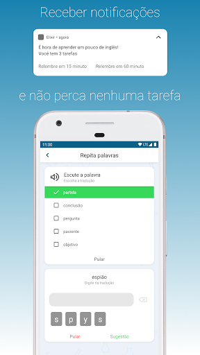 🔔 Receba notificações cada vez que precisar de aprender a língua inglesa. A regularidade é a chave para o sucesso!