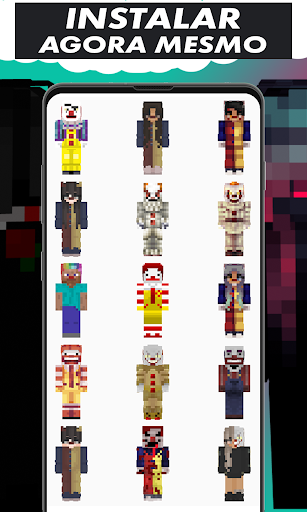Aqui você vai encontrar A mais top skins com a qual você pode se destacar entre os outros jogadores online. Nós, como você, são fãs do jogo de minecraft mais popular e tem certeza de que você definitivamente encontrará uma pele assustadora que você vai gostar. Talvez esta seja a pele de um demônio, demônio ou palhaço.