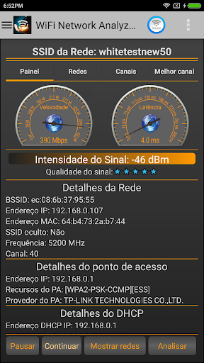 * Informações detalhadas sobre a sua rede e seu ponto de acesso, como provedor do PA ou frequência exata e informações de DHCP
