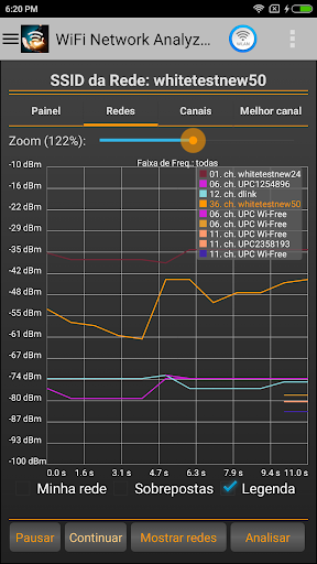 * Função de análise: resolução de DNS, redes sobrepostas, latência, potência do sinal e outros.