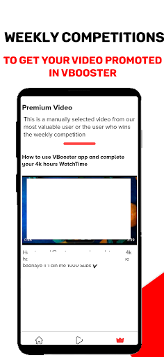 VBooster views booster is a video sharing app to get more views and watchtime. You watch videos, and people will watch yours , what is new is that we have optimized the app to get minutes and views to get more than 4000 hours .