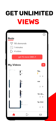 + you can earn a lot of diamonds easily in the app , we give everyday a chance to win a huge number of dms which mean a huge number of videos