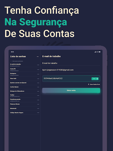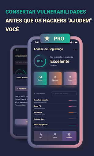 O PassKeep garante que seus dados confidenciais permaneçam protegidos, mesmo que alguém obtenha acesso ao seu dispositivo. O gerador e analisador de senhas ajudam você a manter as senhas mais fortes e seguras para todas as suas contas.