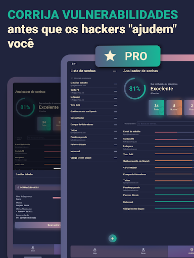 • Notificações: mantenha-se informado sobre senhas desatualizadas ou repetidas