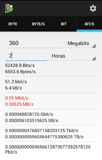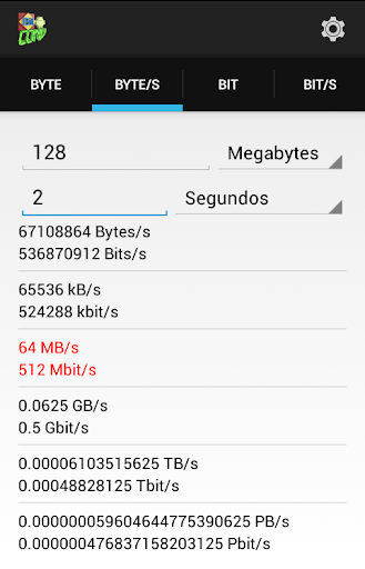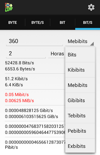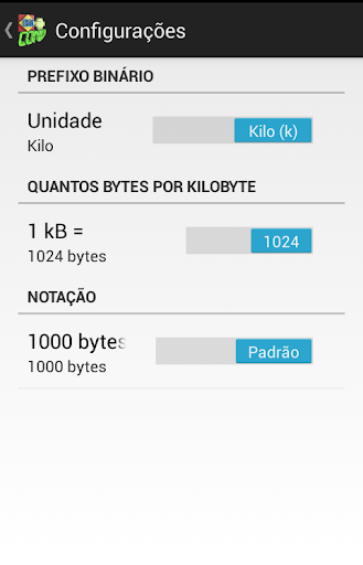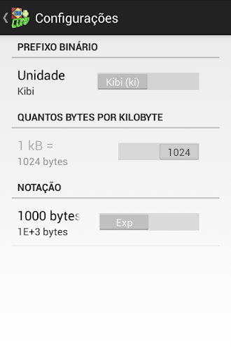 BitConv permite que você selecione sua notação preferida: Kilo / Kibi, Mega / Mebi, Giga / Gibi, Tera / Tebi, Peta / Pebi, Exa / Exbi, Zetta / Zebi, Yotta / Yobi
