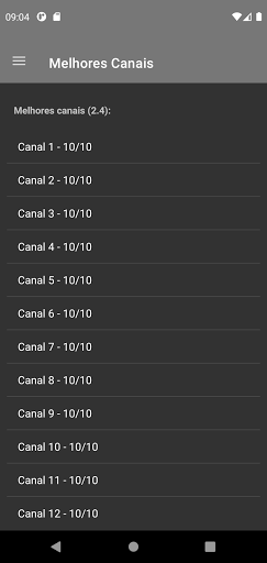 Nosso app também conta com um sistema diferenciado que te ajuda na escolha do melhor canal para sua rede 2.4. Para isso é realizado um scanner em todas as redes próximas, verificamos os canais que elas usam, o campo de interferência dessa rede nos canais próximos e a força do sinal para pontuarmos os melhores canais para você. Essa nota varia de 0 (canal sobrecarregado) até 10 (canal livre).