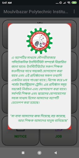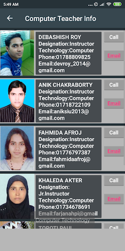 In this app, students are easily able to communicate with teachers. Here included all information about honorable teachers. Students can instantly call and mail inner this. Every teachers information are arrangers beautifully with call and mail buttons. Students easily contact their classmate within from this list. Here listed all Departments with details info. Session 2010/11/12 & 2014 of all students and their name listed fairly. This app decorated with full of educational feature and backgrounds. And here students can able to find about recent job circular. Institute's authority help end of all semester for Internship attachment purpose. Students can able to get recent update and notice by this app.