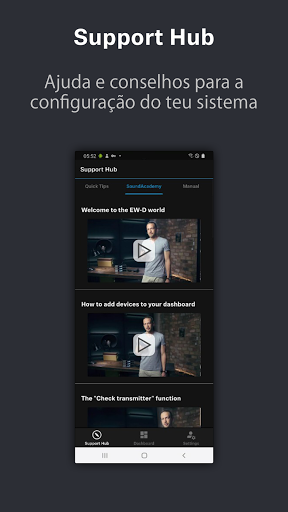 A Evolution Wireless Digital Smart Assist facilita e agiliza a configuração e a utilização do Sennheiser Evolution Wireless Digital. Utiliza o teu smartphone ou tablet para estabelecer a ligação via Bluetooth para uma configuração eficiente e uma visão geral do teu novo sistema sem fios.