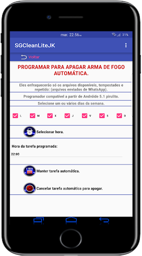 Só marque o dia ou dias à hora desejada e SGClean ele/ela se encarregará de espaço libertador sem o usuário deveria fazer nada mais.